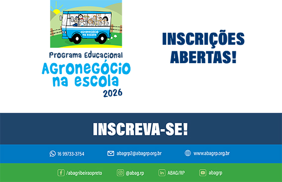 Criado pela ABAG/RP, em 2001, o Programa Educacional “Agronegócio na Escola” tem como objetivo revelar a dimensão e a importância do agro, relembrar a interdependência campo/cidade, e contribuir para que todos conheçam melhor a realidade do setor. Ele é desenvolvido anualmente, com foco na capacitação de professores e na abordagem interdisciplinar do agro.